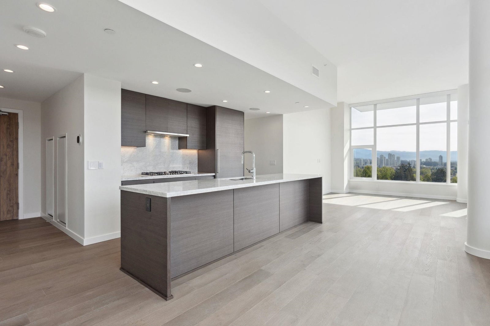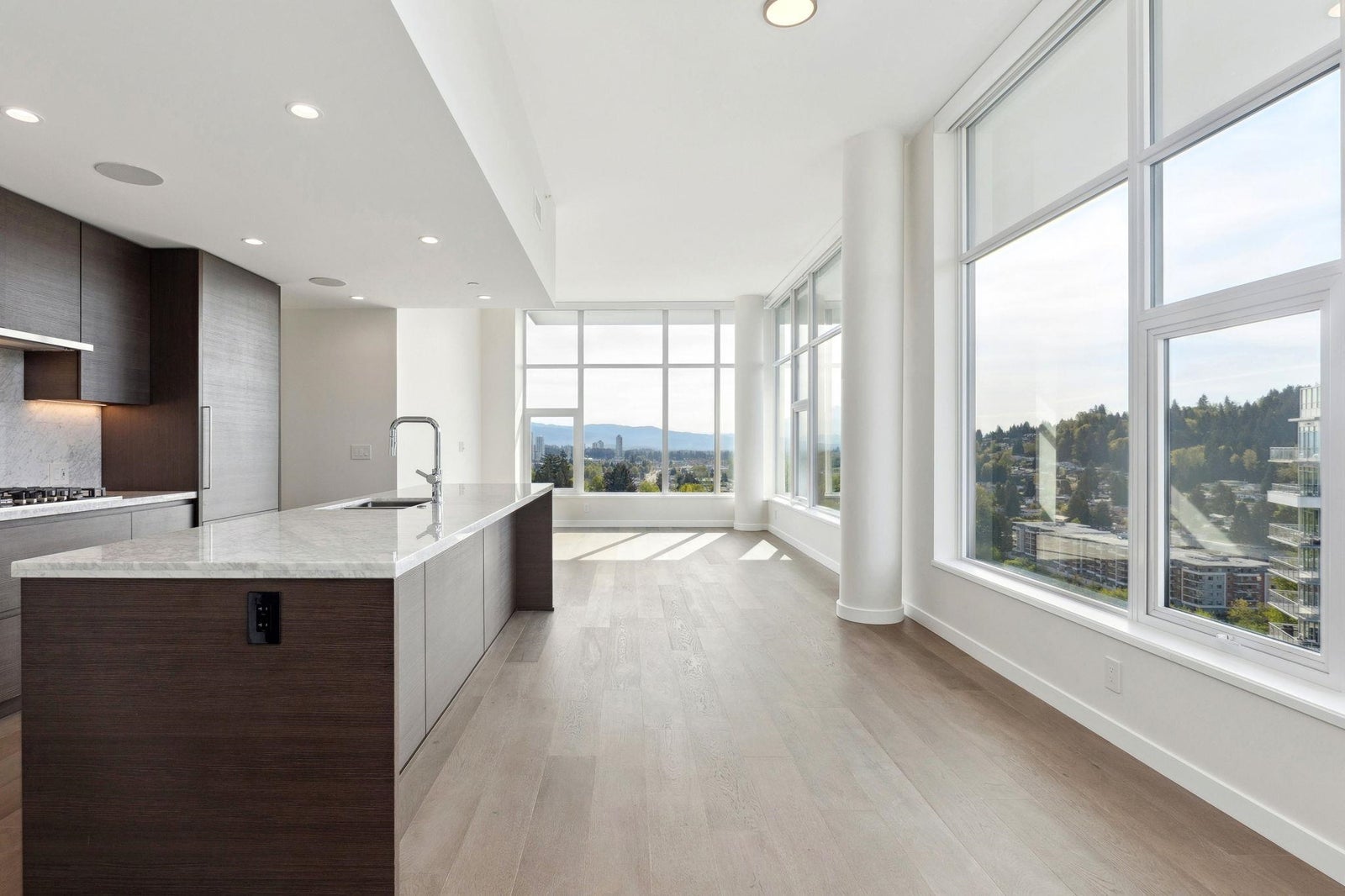 Welcome to The Grande. With over 40,000 square feet pf entertaining and rejuvenating amenities at The Grande, staying close-to-home will be more appealing than ever. This large 3 bedroom, 3 bathrooms PENTHOUSE features a MASSIVE 1280 sqft PATIO with hot tub. This spacious master bedroom includes a luxurious ensuite feature a large walk-in closet, NuHeat electric floor heating, a frameless glass and a deep soak tub. The kitchen is a chefs dream; outfitted with a fully integrated European appliances, marble topped breakfast bar with a separate space for formal dining. Stay cool all summer long, thanks to the integrated cooling system keeping things comfortable all year around. Build by award-winning Onni Group. Steps away from Shopping, restaurants, breweries, and Inlet Sky train station.