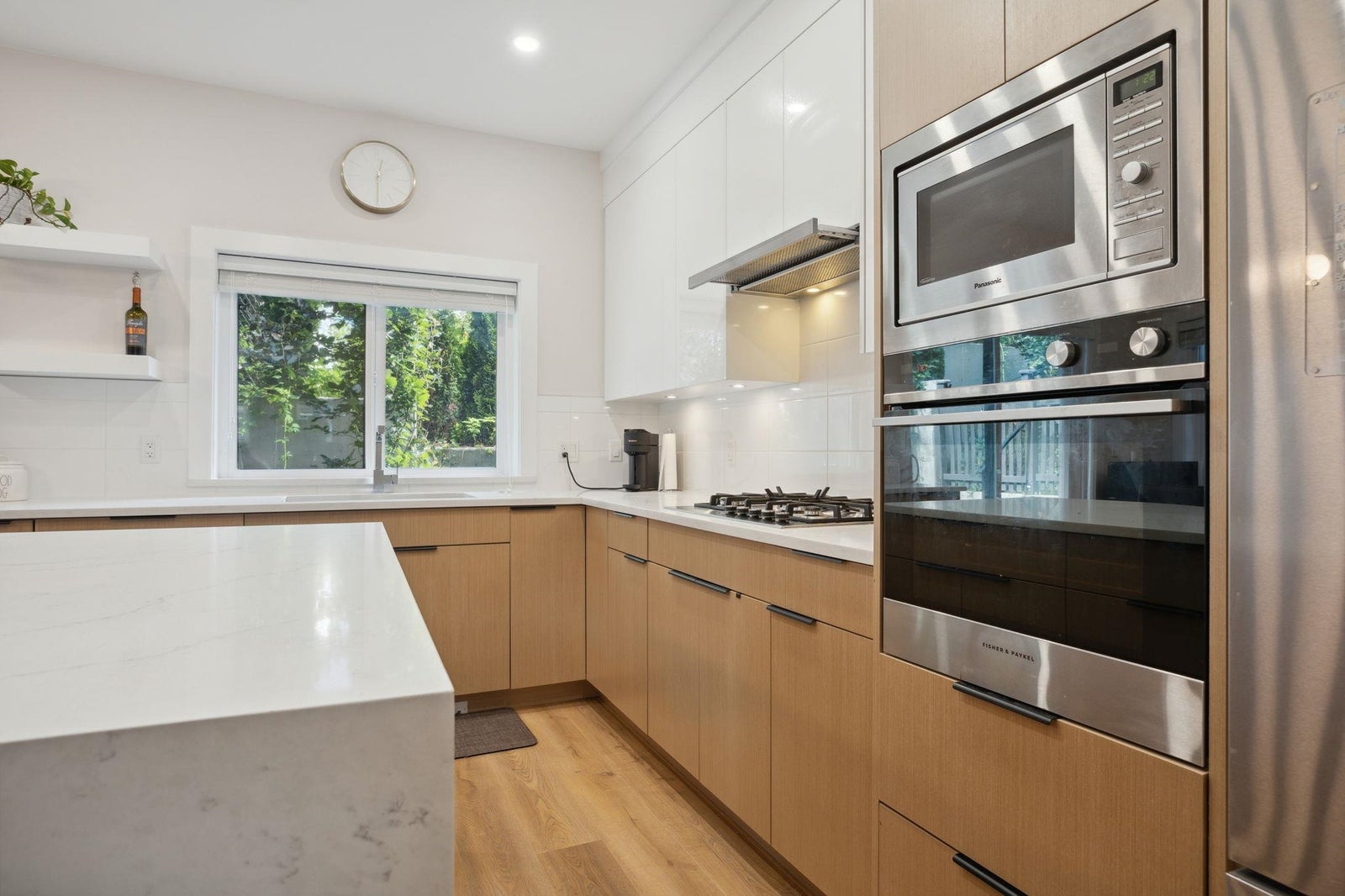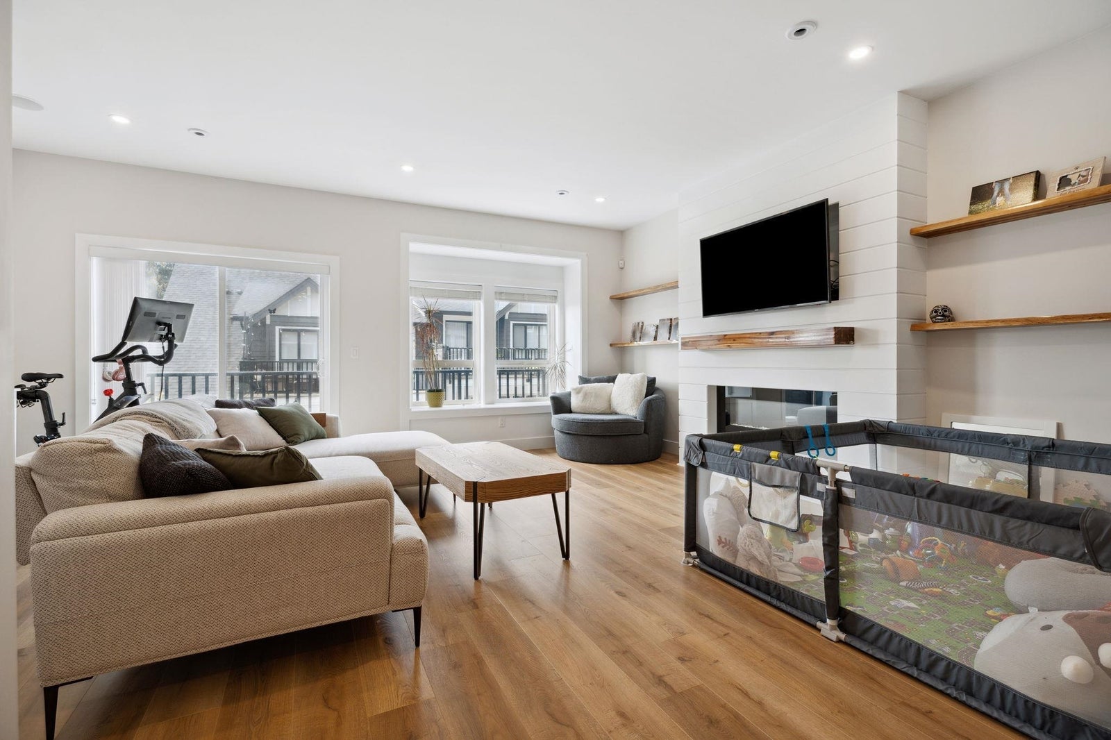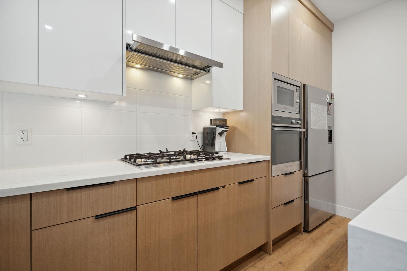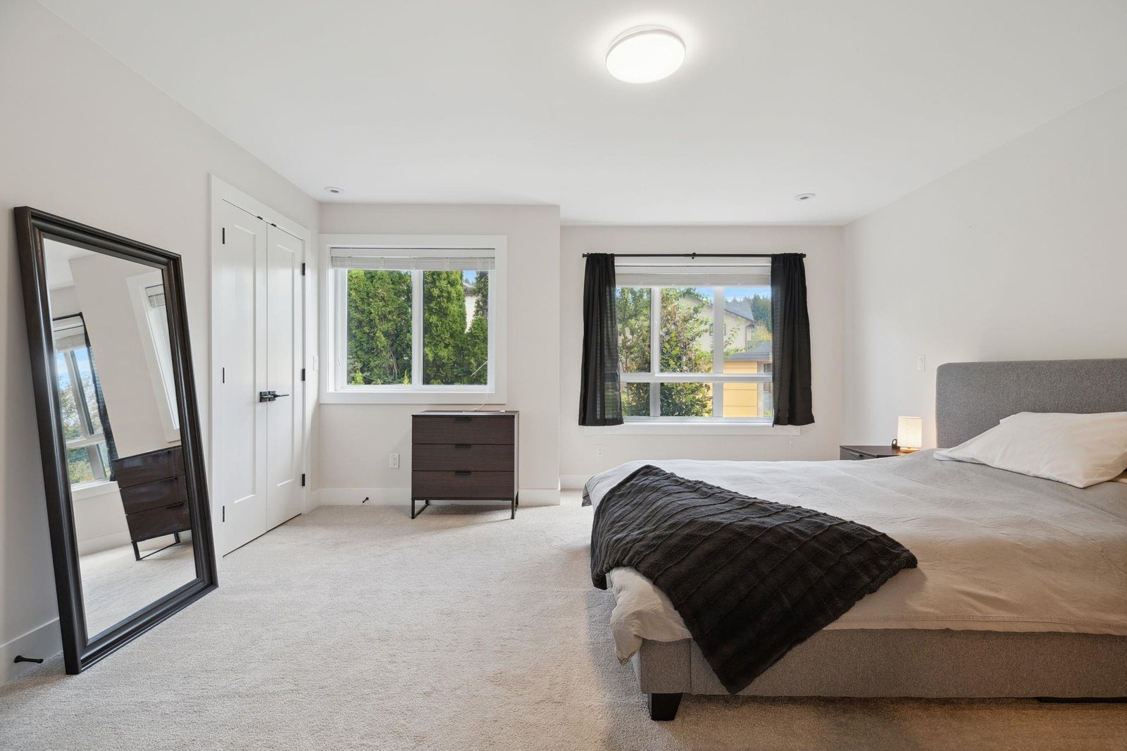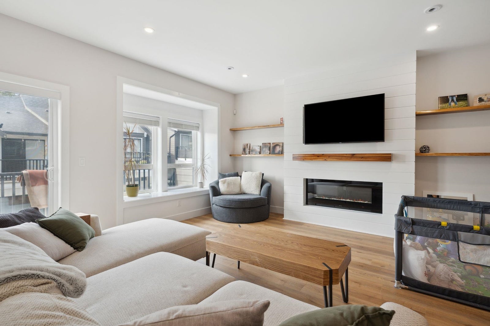 Welcome to Timber Ridge – the best-priced 4 bed, 4 bath home in Burke Mountain! Offering over 2,000 sq ft of modern living, this 2021-built townhome is surrounded by greenery and perfectly positioned at the top of Burke Mountain, away from traffic and close to trails. Enjoy peace and quiet while still being minutes from new schools, shopping, parks, and transit. Inside, upscale finishes include a gourmet kitchen with Fisher & Paykel appliances, quartz countertops, custom feature wall, and bar fridge. The bright open floorplan is ideal for families or entertaining. Stay comfortable year-round with high-velocity heating, AIR CONDITIONING, and on-demand hot water. The double garage includes roughed-in central vac. This is unbeatable value you won’t find anywhere else in Burke!