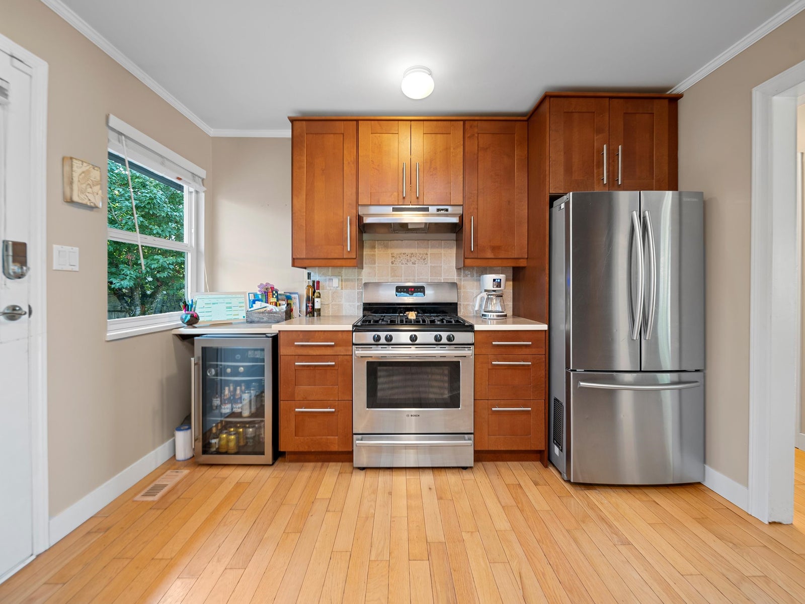 PRIVATE & QUIET. This well-kept 4-bed, 3-bath Cloverdale home sits on a full-size 7,180 sq ft south-facing lot with a private backyard backing onto a small park at the end of a no-thru cul-de-sac. Offering space, privacy, and natural light, the home has been extensively renovated with hardwood floors, a European-style kitchen, updated baths, crown mouldings, new fixtures, and vinyl windows. Recently painted inside and out, it is fresh and move-in ready. The lower level includes a spacious 1-bed suite with oversized living room, separate entrance, and its own laundry—an ideal mortgage helper. All of this in a great location close to everything, surrounded by growth with the future Fraser Downs entertainment district, new hospital, new arena and upgrades to the Athletic Park.