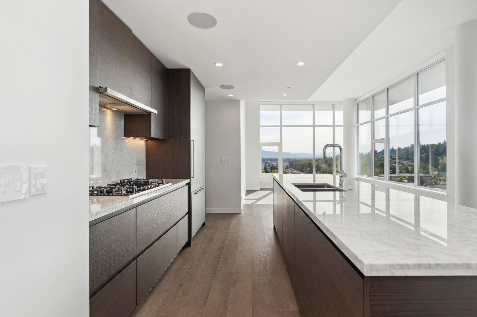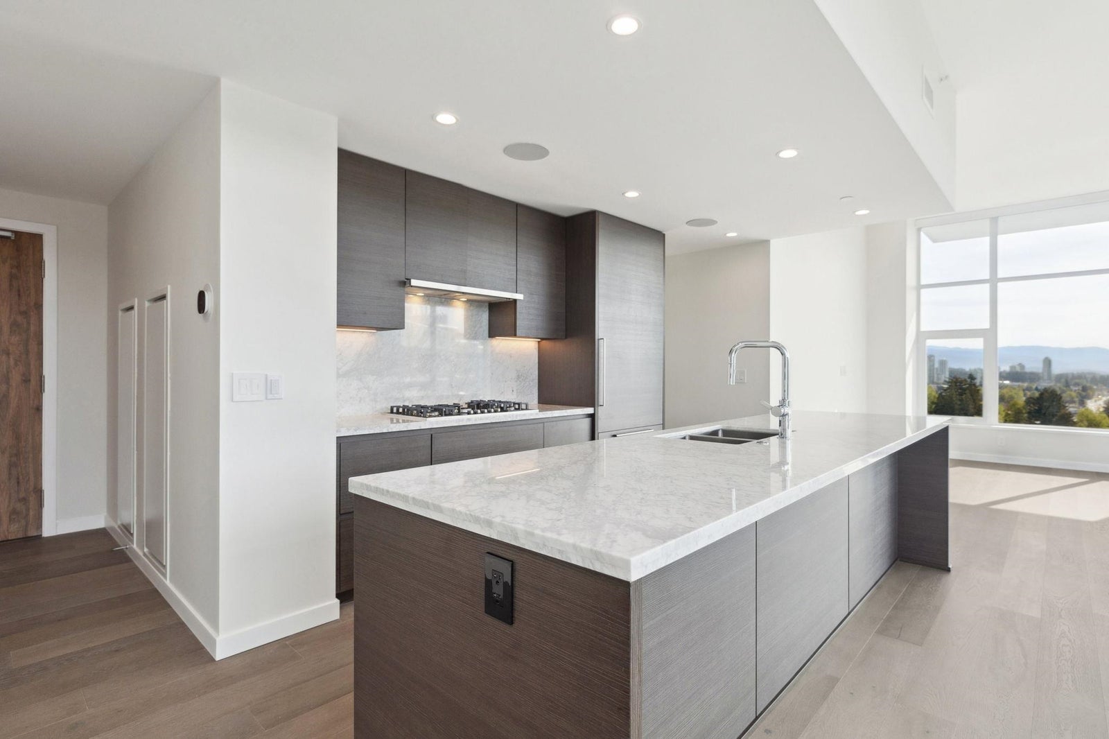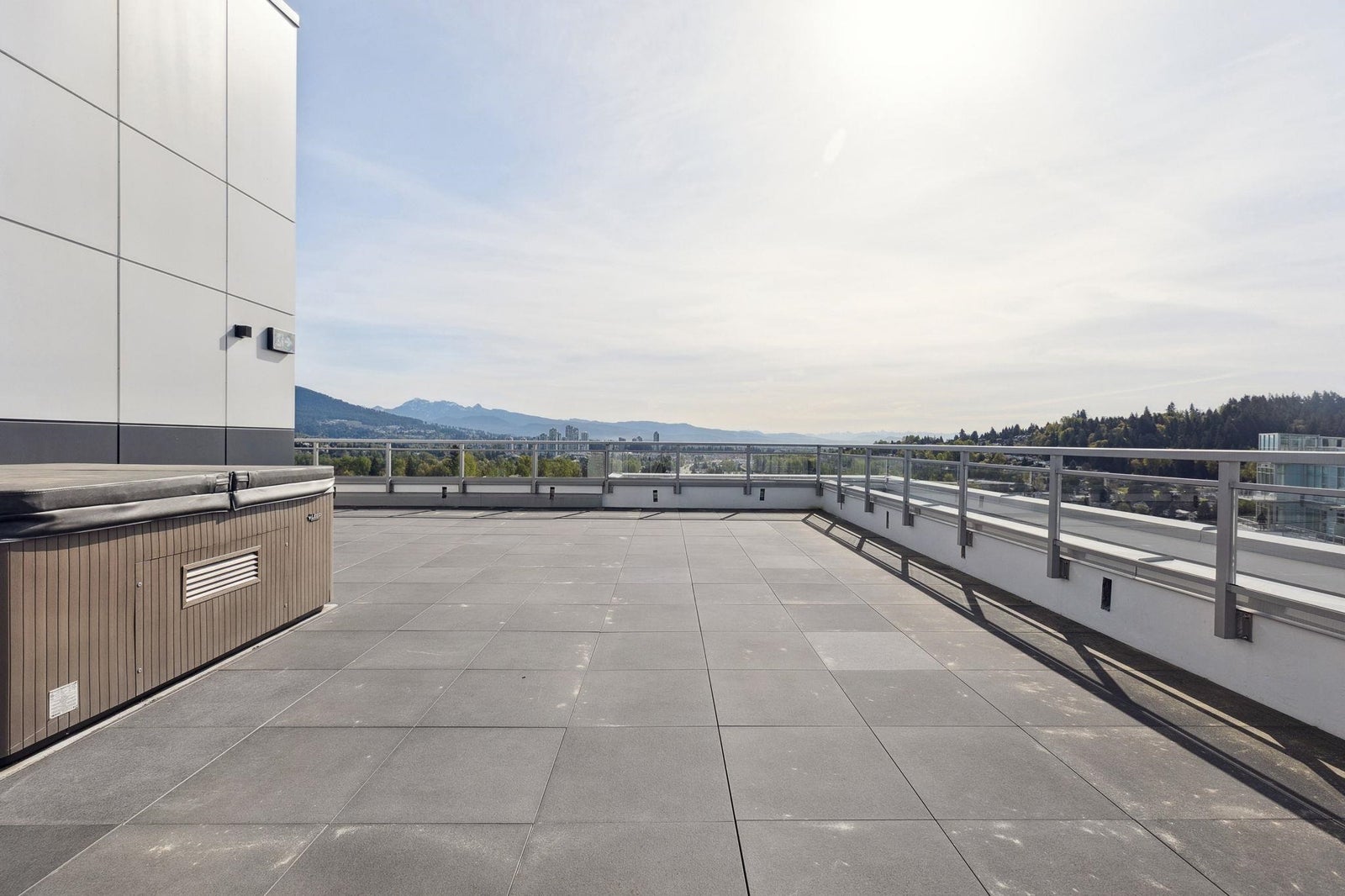 Welcome to The Grande. With over 40,000 square feet pf entertaining and rejuvenating amenities at The Grande, staying close-to-home will be more appealing than ever. This large 3 bedroom, 3 bathrooms PENTHOUSE features a MASSIVE 1280 sqft PATIO with hot tub. This spacious master bedroom includes a luxurious ensuite feature a large walk-in closet, NuHeat electric floor heating, a frameless glass and a deep soak tub. The kitchen is a chefs dream; outfitted with a fully integrated European appliances, marble topped breakfast bar with a separate space for formal dining. Stay cool all summer long, thanks to the integrated cooling system keeping things comfortable all year around. Build by award-winning Onni Group. Steps away from Shopping, restaurants, breweries, and Inlet Sky train station.